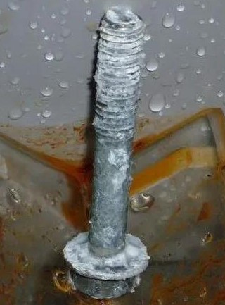 白銹是相對于紅銹命名的,紅銹是金屬基體腐蝕呈現(xiàn)的銹蝕產(chǎn)物,白銹則是鍍鋅鈍化層的腐蝕產(chǎn)物,也就是說鋅腐蝕產(chǎn)生白銹,白銹的主要成分為氫氧化鋅。