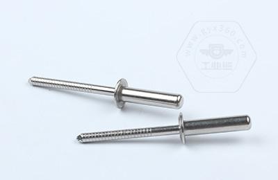 鉚接時,鉚釘釘芯由專用鉚槍拉動,使鉚體膨脹,起到鉚接作用。這類鉚釘特別適用于不便采用普通鉚釘(須從兩面進行鉚接)的鉚接場合。故廣泛用于建筑、汽車、船舶、飛機、電器、家具等產品上。
