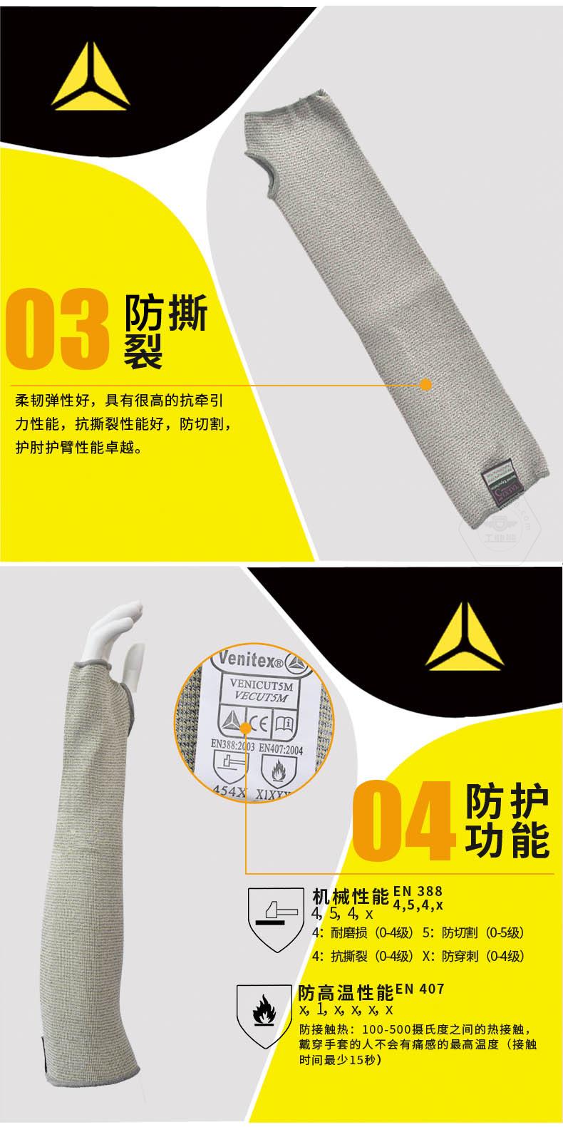 商品名稱:代爾塔 防切割套袖 隔熱防割手套工作勞保手套 耐磨抗撕裂耐高溫工業(yè)級針織高強度202013 淺灰色 一只(不分左右手)