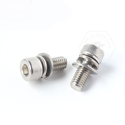• 產(chǎn)品描述:DIN912 內(nèi)六角圓柱頭滾花帶平彈墊組合螺釘,是組合螺釘?shù)囊环N,又稱為內(nèi)六角圓柱頭組合件、內(nèi)六角杯頭連接副、內(nèi)六角杯頭三組合螺絲、圓柱頭自帶平彈墊螺釘。DIN912 內(nèi)六角圓柱頭滾花帶平彈墊組合螺釘,由內(nèi)六角圓柱頭螺釘、平墊圈和彈墊先組合后,再搓絲,形成一個(gè)組合件,組合好后墊圈能自由轉(zhuǎn)動(dòng)且不會(huì)脫落。組合件使用方便,不用再另配平墊、彈墊,大大提高生產(chǎn)組裝效率。DIN912 內(nèi)六角圓柱頭滾花帶平彈墊