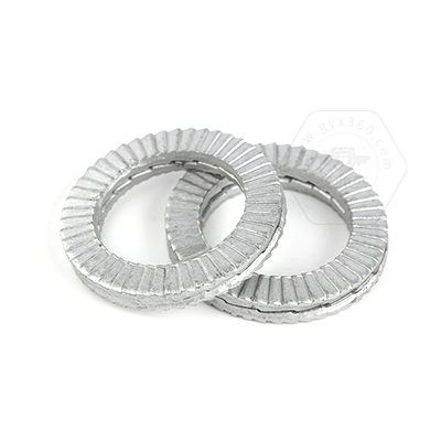 • 產(chǎn)品描述:DIN25201S 雙疊自鎖墊圈,行內(nèi)也稱碳鋼防松鎖緊墊圈、抗振防松動墊圈、自動鎖緊功能墊圈、安全鎖緊墊圈、愜入式鎖緊墊圈、雙疊自鎖墊圈、對鎖墊圈、雙層防松墊片、減震墊圈。DIN25201雙疊自鎖防松墊圈由兩片成對組成,外側(cè)有斜紋細(xì)齒,內(nèi)側(cè)有斜角較大的射狀寬齒面(墊圈)。寬齒面的角度大于螺栓螺紋的角度。組裝時內(nèi)斜齒面相對,外側(cè)放射狀齒面與兩端接觸面形成咬合狀態(tài),當(dāng)連接件收到振動并產(chǎn)生螺栓松動隱患時